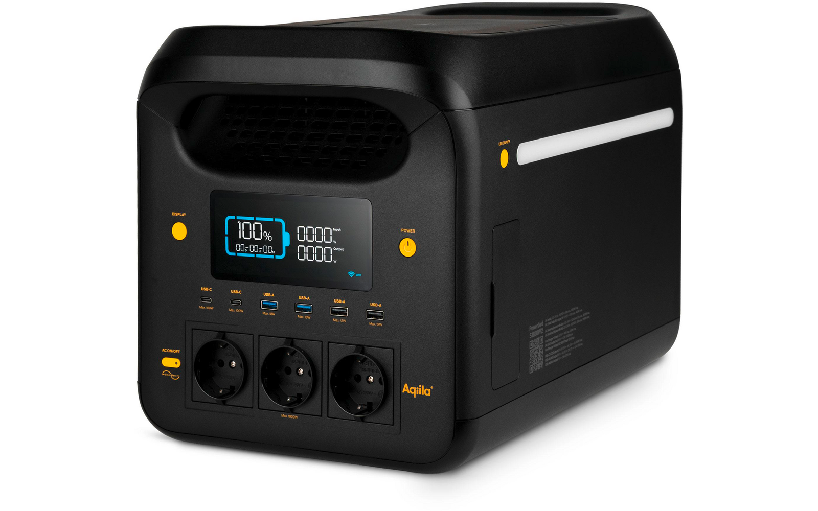 Mit der Aqiila Powerbird S1800V2 versorgst du auch energieintensive Geräte zuverlässig mit Strom. Mit 1800 W Leistung und 1229 Wh Kapazität eignet sich die Powerstation ideal für Ventilatoren, Laptops und weitere Geräte mit höherem Energiebedarf. Das klare LCD-Display zeigt dir jederzeit den Akkustatus, während du Einstellungen bequem über die Smartlife App verwaltest. Dank vielseitiger Anschlussmöglichkeiten kannst du bis zu 12 Geräte gleichzeitig betreiben. Das kompakte Design erleichtert den Transport, eine integrierte LED-Leuchte sorgt für Licht in dunklen Situationen. Der LiFePO4 Akku (Lithium-Eisenphosphat) mit mindestens 3000 Ladezyklen bietet eine 6 x längere Lebensdauer. Das integrierte Batteriemanagementsystem sorgt für eine sichere und effiziente Aufladung bei verschiedenen Lademöglichkeiten.