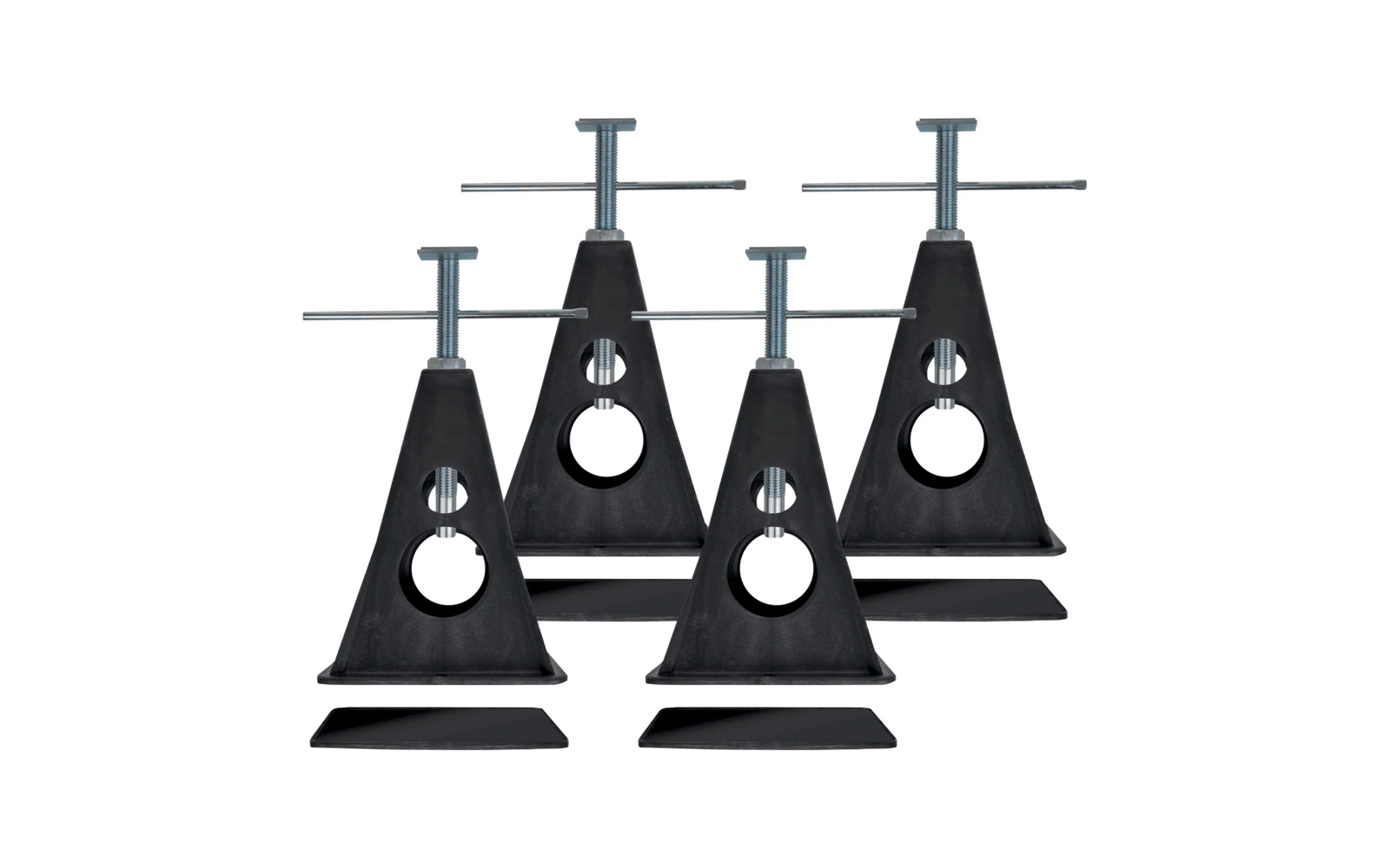 Dieses 4er-Set Stützböcke sorgt für mehr Stabilität beim Abstellen von Wohnwagen und Reisemobilen. Die große Grundplatte hilft dabei, den Druck besser zu verteilen und ein Einsinken auf weicherem Untergrund zu reduzieren. Die Stützböcke sind höhenverstellbar und stapelbar, sodass sie sich flexibel an die jeweilige Situation anpassen lassen. Durch das geringe Gewicht pro Bock sind sie leicht zu transportieren und schnell zur Hand.