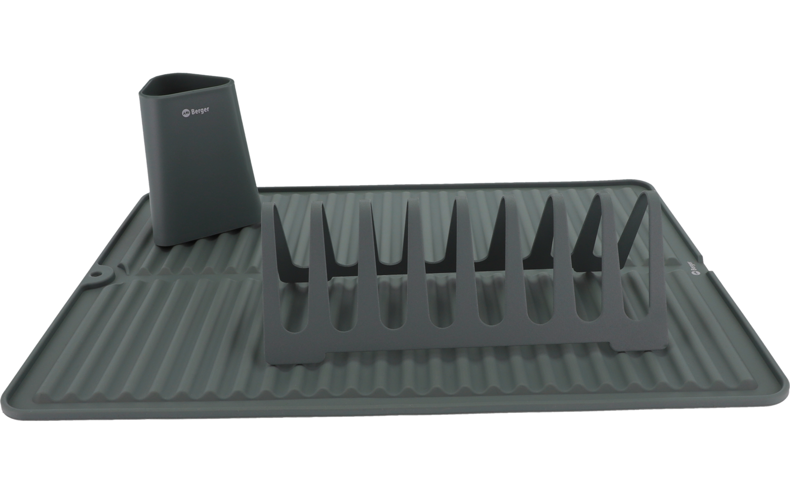 Berger Abtropfgestell Set 3-tlg. mit Geschirrhalter, Abtropfmatte und Besteckhalter grauBerger Abtropfgestell Set 3-tlg. mit Geschirrhalter, Abtropfmatte und Besteckhalter grün