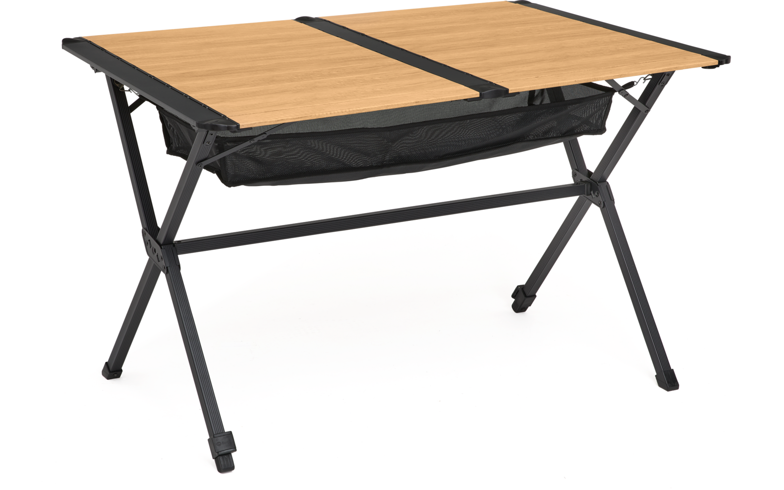 Die Tischplatte aus robusten Aluminium-Paneelen lässt sich platzsparend zusammenrollen und ist deshalb einfach zu verstauen. Das klappbare Untergestell ist aus einem stabilen Alu-Vierkantrohr mit Querstrebe zur Stabilisierung. Das kleine Packmaß und der Tragegurt am Packsack machen den Rolltisch zu einem perfekten Begleiter für unterwegs. Der höhenverstellbare Fuß sorgt für einen geraden Stand.
