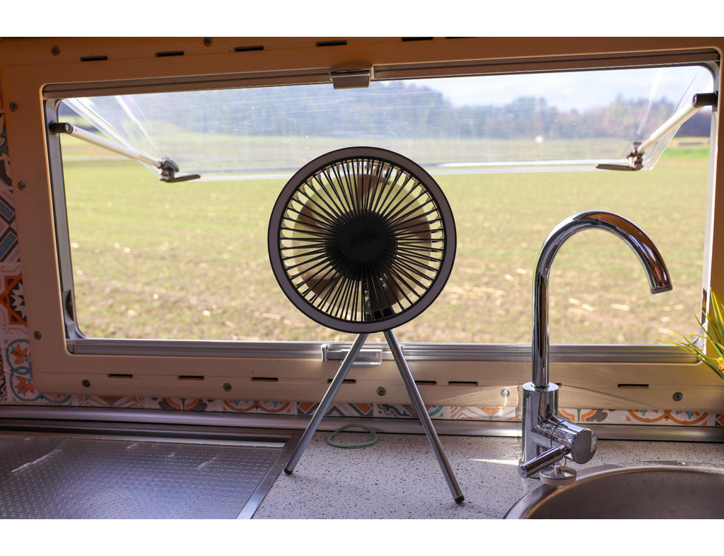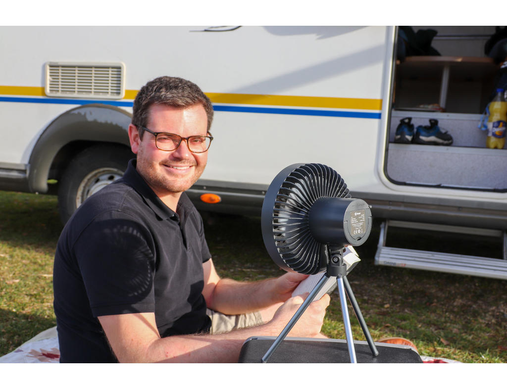 Kompakter Ventilator mit Powerbank-Funktion und integrierter Leuchte