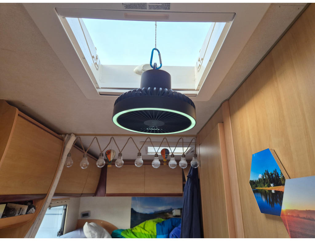| Ideal als Deckenleuchte und -ventilator im Zelt | Powerbank-Funktion |