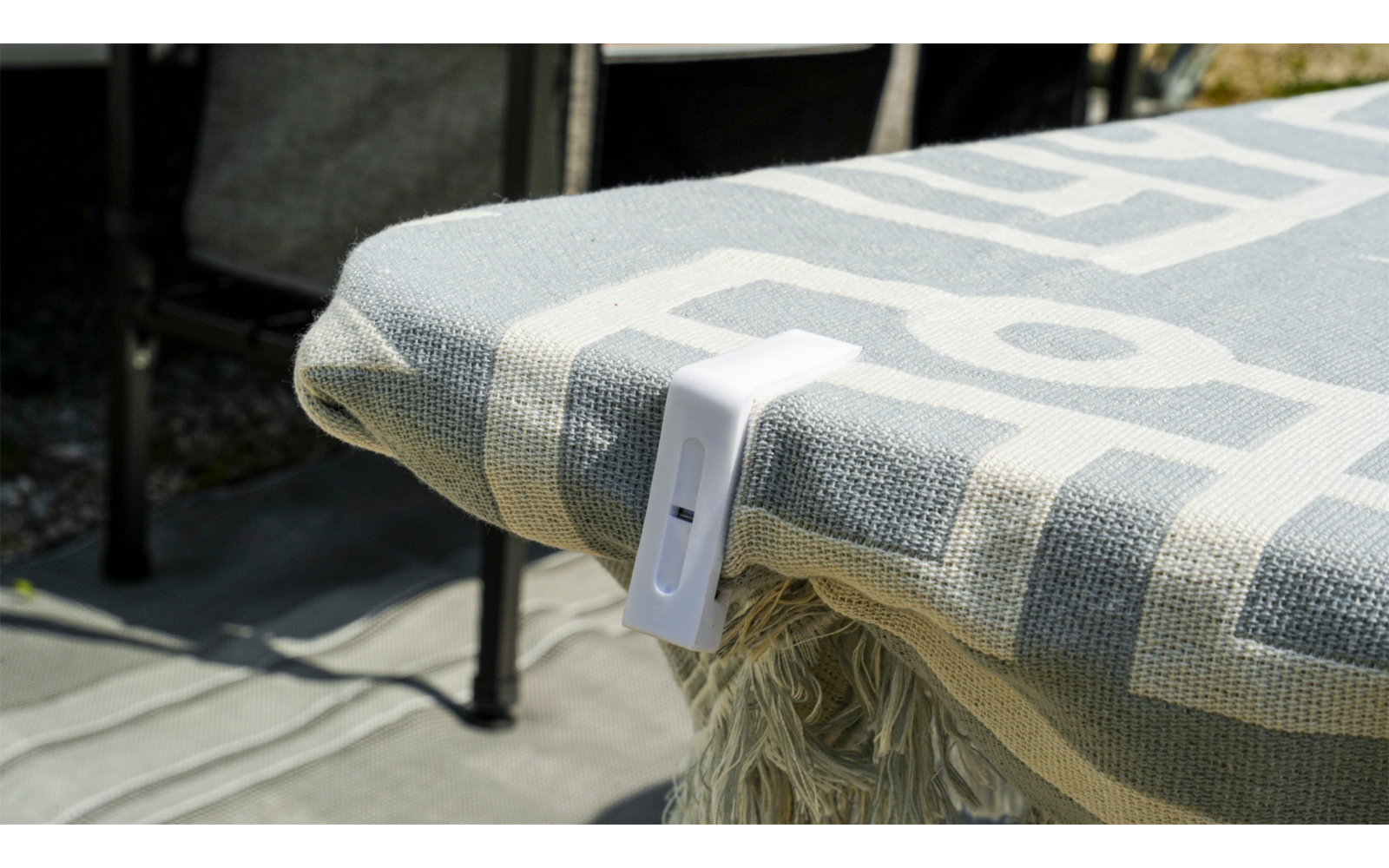 4er-Set Tischklammern, die einen sicheren Halt der Tischdecke versprechen, auch bei starkem Wind.