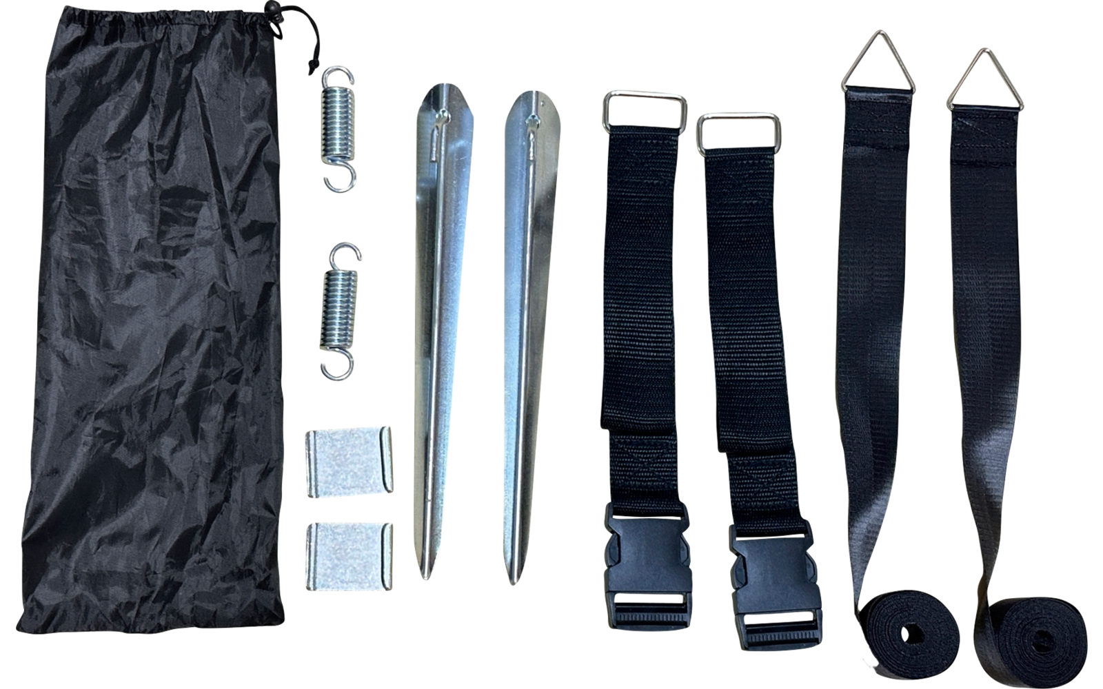 Das Tie Down Kit ist ein robustes und vielseitiges Befestigungsset, das Ihre Markise, Ihr Vorzelt oder Ihren Caravan zuverlässig gegen Wind und Sturm sichert. Die strapazierfähigen Polypropylen-Gurte, Stahl-Heringe, Spannfedern und Frontpanel-Haken bieten maximale Stabilität und einfache Handhabung. Ideal für alle Arten von Markisen und Caravan-Zubehör.
