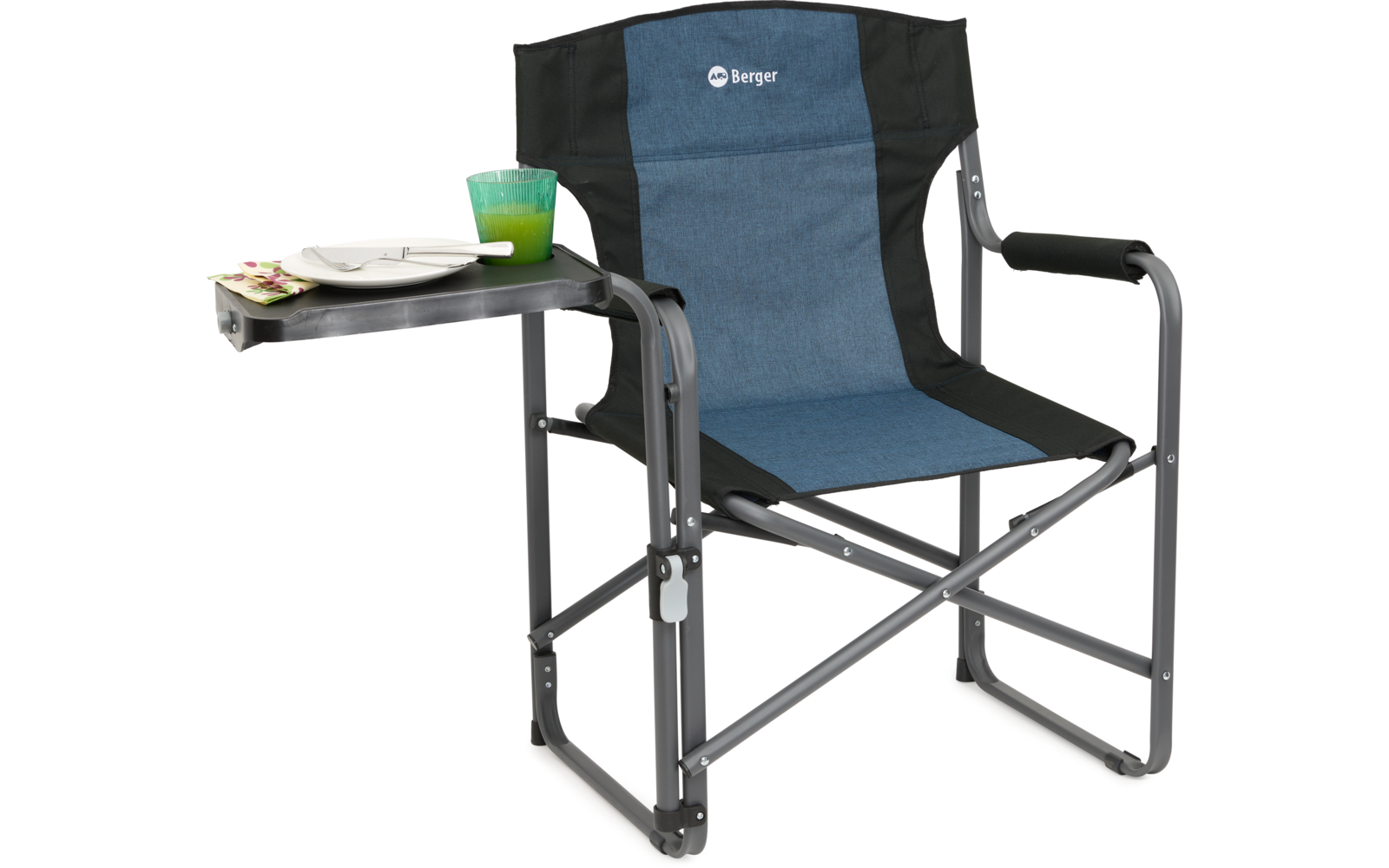 Dank seines äußerst kompakten Packmaßes ist dieser Stuhl der ideale Begleiter für unterwegs. Das stabile Stahlrohrgestell und der strapazierfähige, leicht gepolsterte Bezug aus 100 % Polyester bieten zuverlässigen Komfort bei jeder Reise. Der praktische Seitentisch aus Kunststoff bietet Getränke- und Tablet-Halter sowie einen Telefonplatz. Die gepolsterte Armlehne sorgt für zusätzlichen Komfort. Ideal für Camping und Garten.