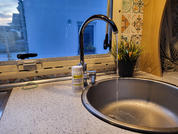 Wasser läuft aus einem Wasserhahn in eine Spüle