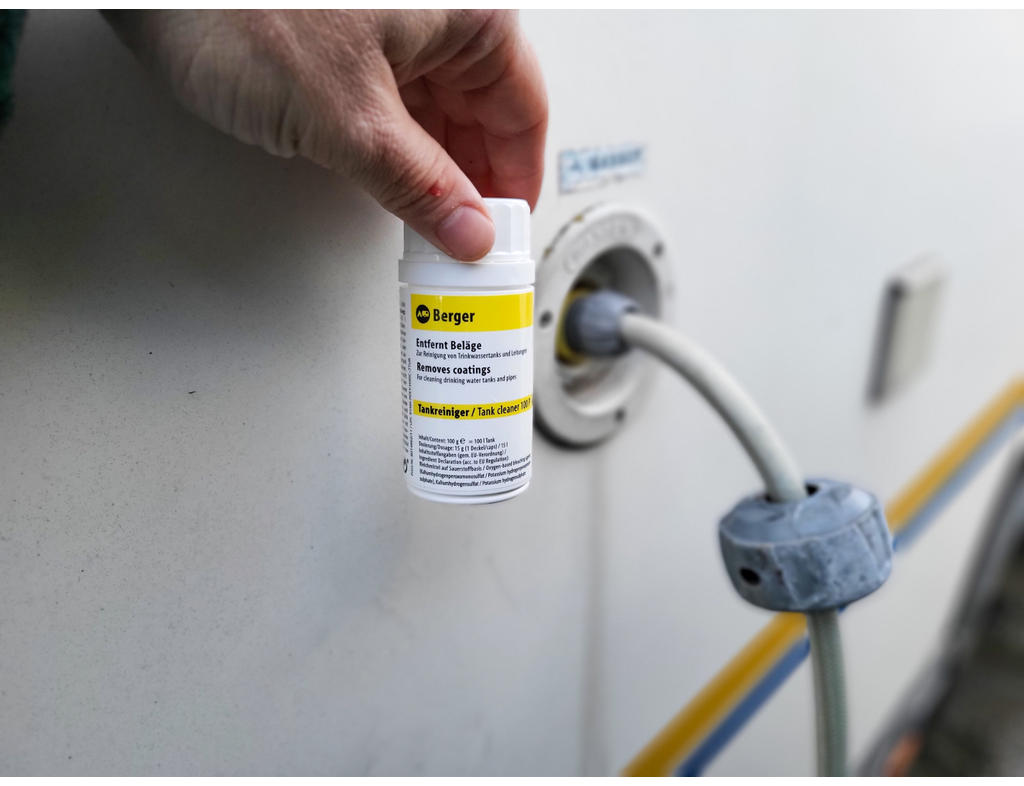 "diverse Mittel zur Tankreinigung (Boot, 100Liter Wassersack) erfolglos eingesetzt, mit dem Berger Tankreiniger und der anschließenden Entkalkung voller Erfolg. Kaufempfehlung!"