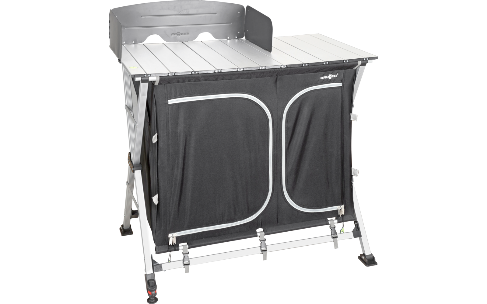 Hohe Arbeitsfläche für komfortables Arbeiten beim Kochen Robuste Materialien für langlebige Nutzung im Campingalltag