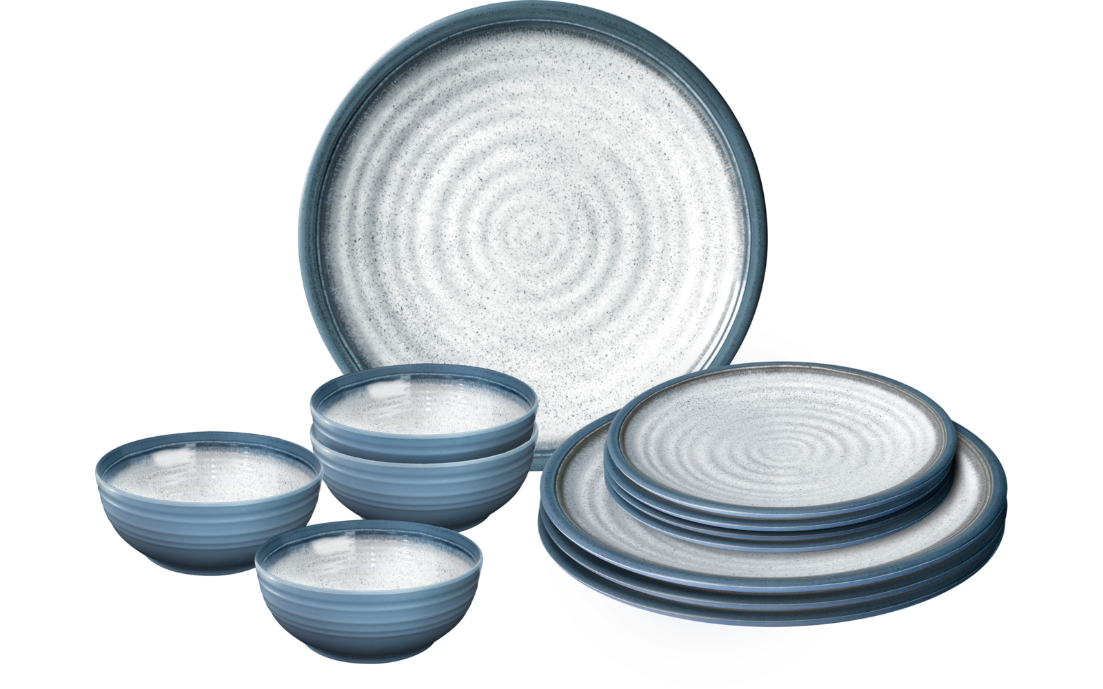 Brunner Midday Granada Geschirrset Melamin Mineral 12-teilig Porzellan-Touch Antirutsch BPA-frei