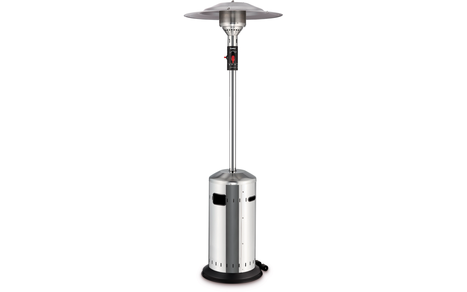Die schlanke Optik aus poliertem Edelstahl, der große 76 cm Reflektor und robuste Materialien machen den Heizer zu einer langlebigen Lösung für deine Terrasse. Eine 11-kg-Gasflasche lässt sich im Gehäuse verstauen, und mit den Transportrollen bewegst du ihn bequem an den gewünschten Ort.