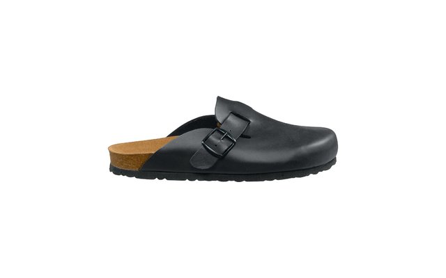 Gut dämpfender, sehr bequemer Clog mit Schnallenverstellung und Kork-Kautschuk Fußbett.