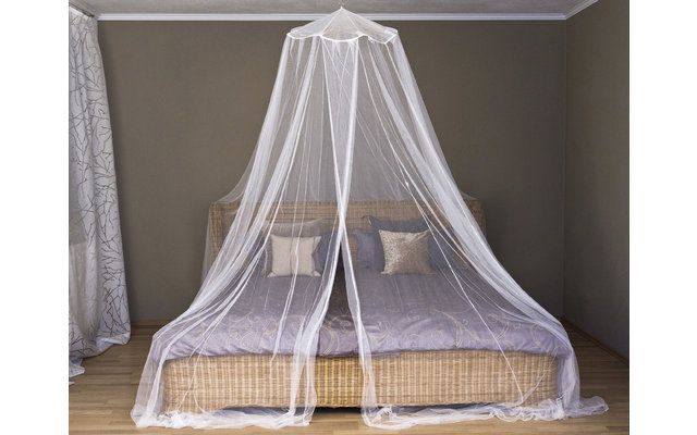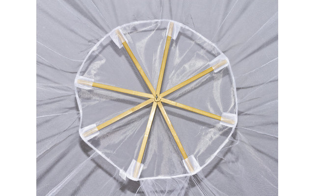 Ideal für den Einsatz beim Camping, Trekking und anderen Reisen. Schützt vor Insekten und Spinnen. Geeignet für alle Bettgrößen bis max. 200 x 220 cm. Holzspinne mit Punktbefestigung. Netz in Pyramidenform.
