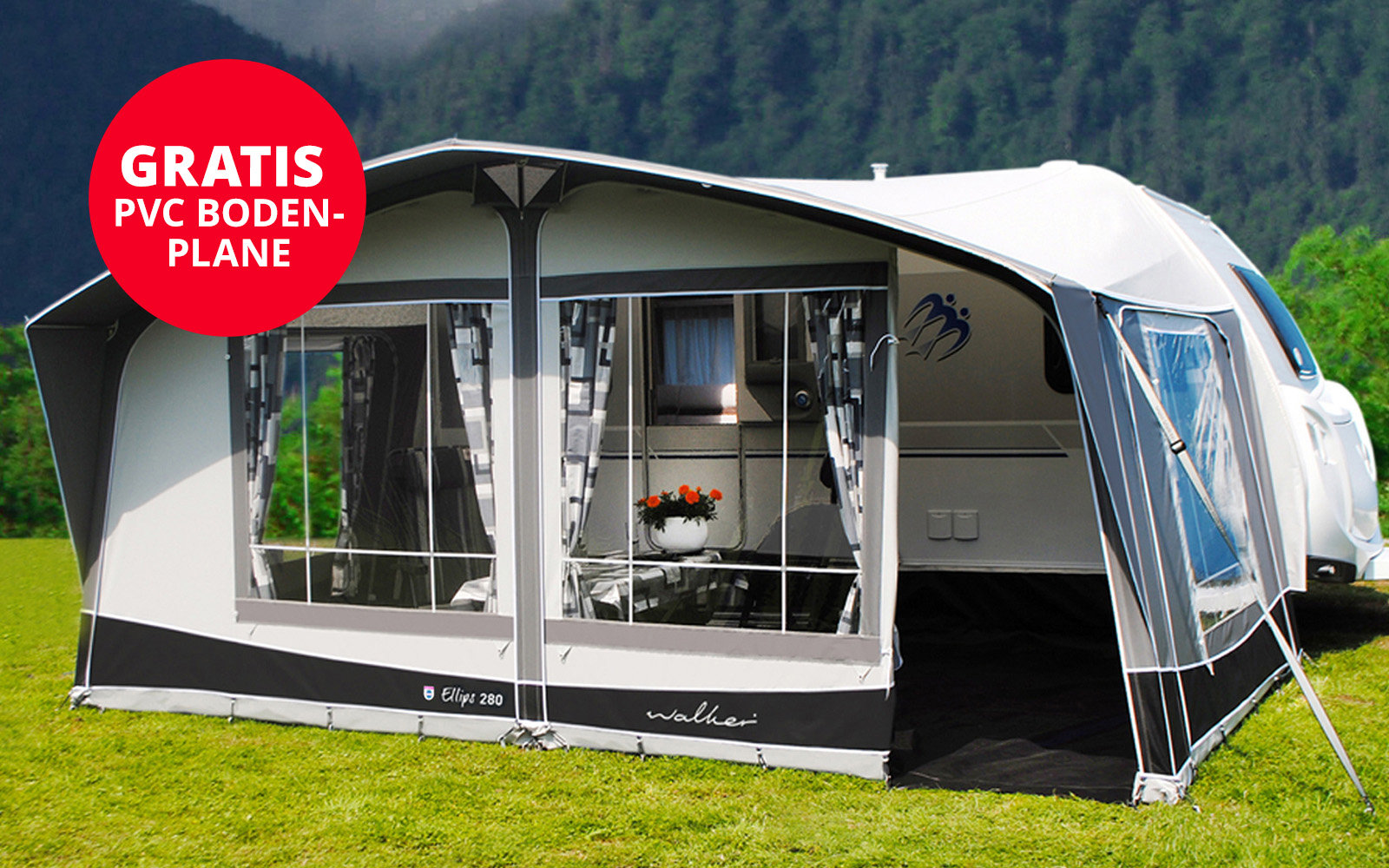 Ausstrahlung, Qualität und Komfort gehen Hand in Hand bei dem Walker Ellips-280! Dieses modern entworfene Vorzelt ist als Saisonzelt und auch als Reisezelt geeignet. Das Vorzelt Ellips 280 wird mit einem speziell dafür entworfenem Stahlgerüst komplett geliefert. Mit einer Tiefe von 280 cm bietet das Ellips-280 ein großzügiges Platzangebot.
