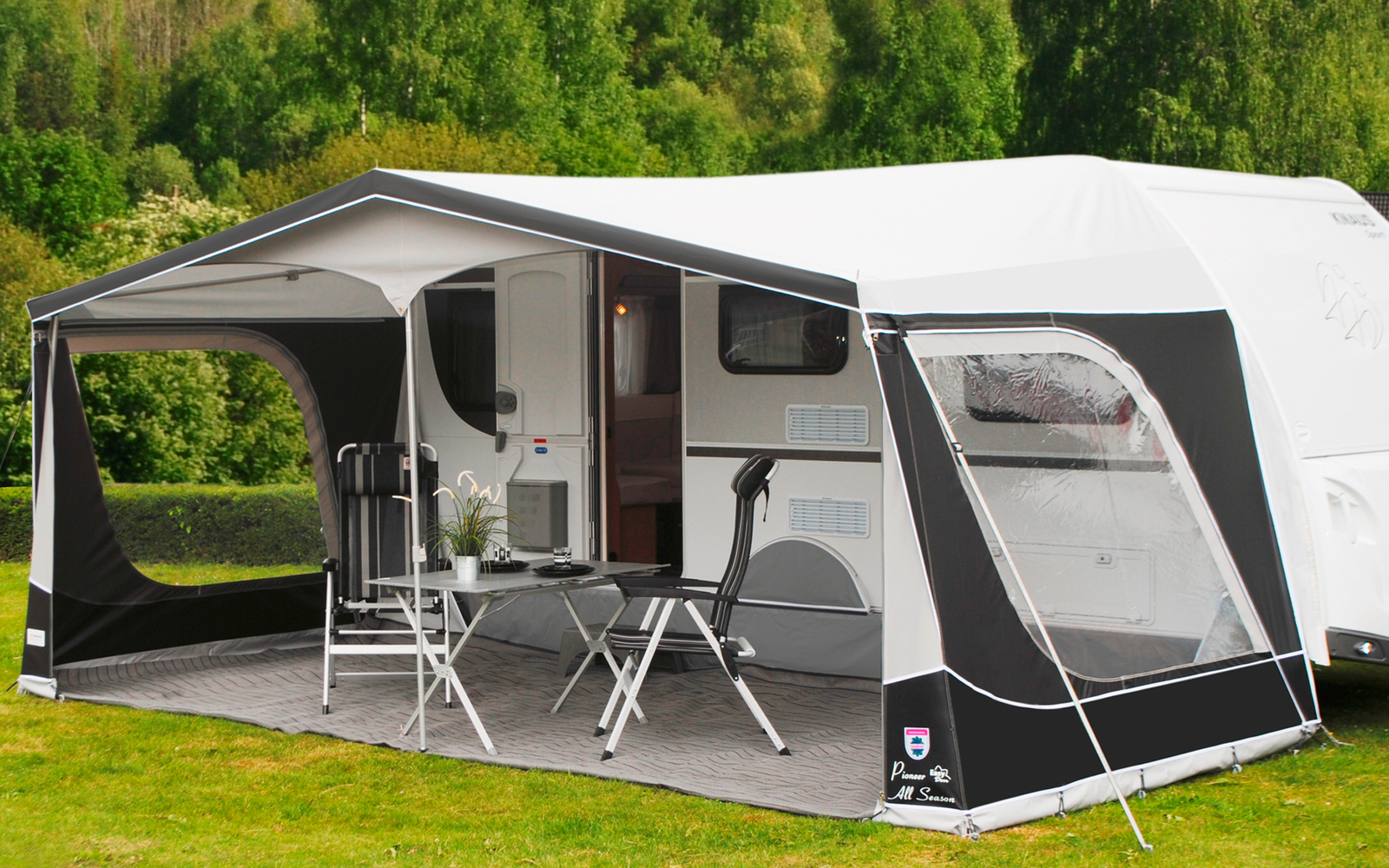 | Luxuriöses Vorzelt | Für alle Jahreszeiten geeignet | Tauschbare Vorderwandhälften | Mit variablem Eingang |