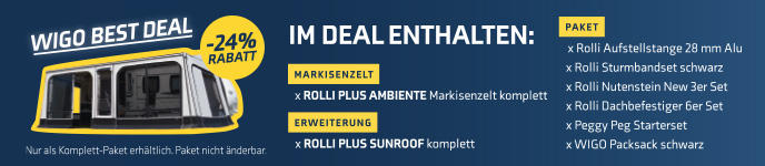 WIGO Best Deal 2026 Rolli Plus Ambiente Markisenzelt inklusive Sunroof und Rock N Rolli Paket Tiefe 250 cm Größe 15
