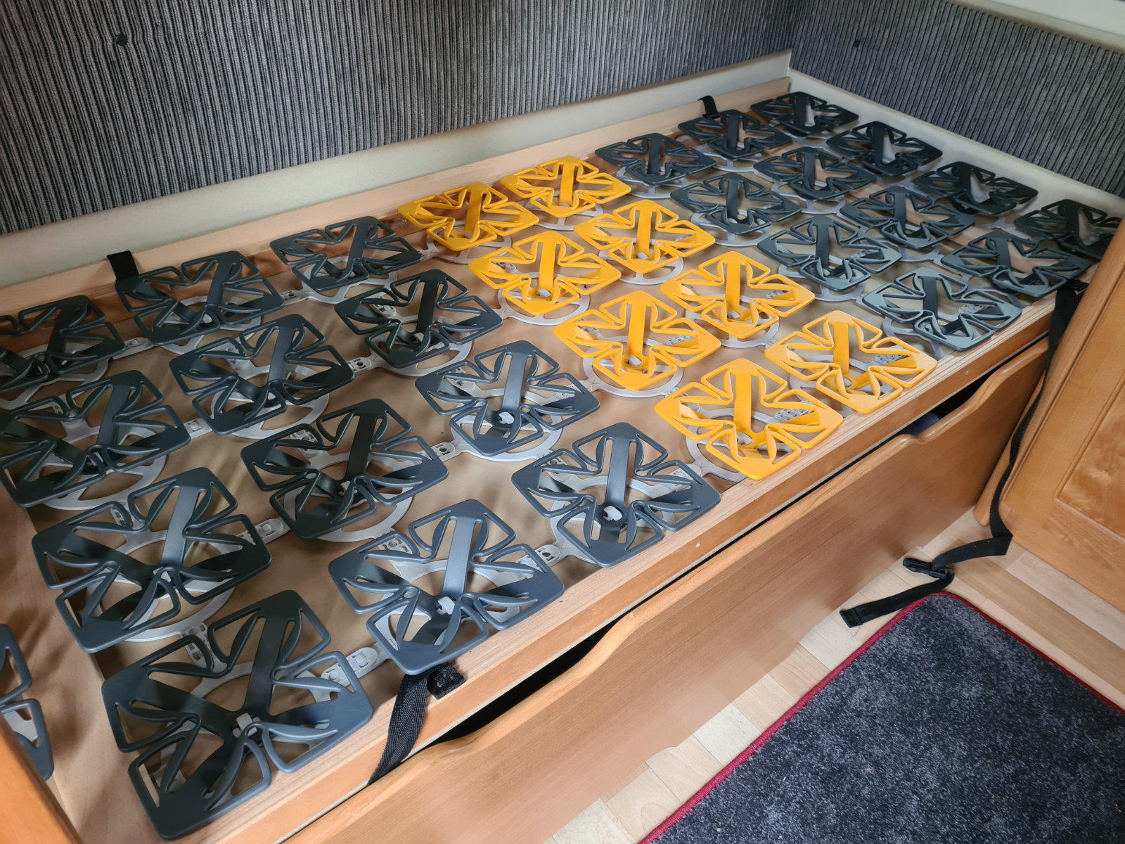 Hat dein Wohnmobilbett einen Lattenrost? Glück gehabt. Oft liegt die Matratze nur auf einer Spanplatte und ist nicht ausreichend belüftet. Zudem kann das wirklich unbequem sein. Hier schafft das Berger Sentina Mobil Bettensystem Abhilfe. Es handelt sich hierbei um ein Nachrüst-Schlafsystem aus Federelementen, welche Nacken- und Rückenwirbel durch punktgenaue Federung in eine orthopädisch richtige Lage bringt. Die Federelemente werden zu einer komfortablen Unterfederung verbunden und arbeiten wie ein Lattenrost.