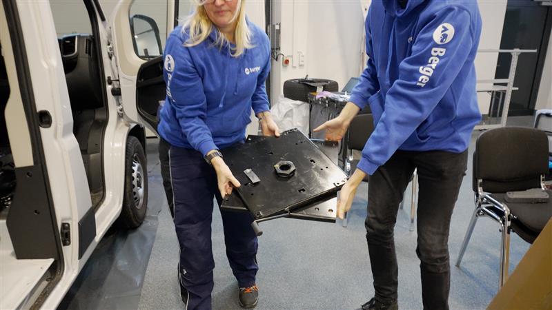Der Einbau umfasst das Abklemmen der Batterie, Ausbau der Sitze, Montage von Konsole und Adapter sowie den Wiederanschluss aller Komponenten inklusive Elektrik.