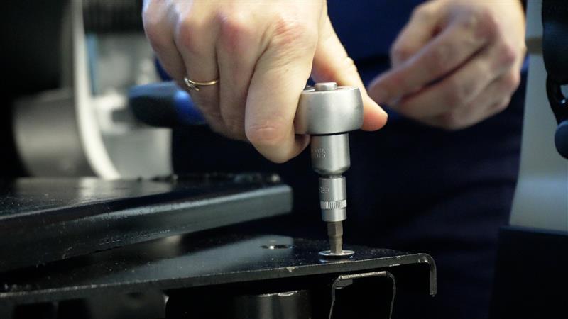 5. Jetzt montierst du die neue Drehplatte. Drehe die Schrauben anfangs nur leicht an, erst wenn die Platte richtig sitzt, kannst du sie festziehen.